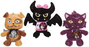 Se trata de Lagoona, Frankie y Draculaura y de los peluches los los mismos tres, Waltzit ( el perro) Crescent ( el gato ) y Count Fabolous ( el murcielago)